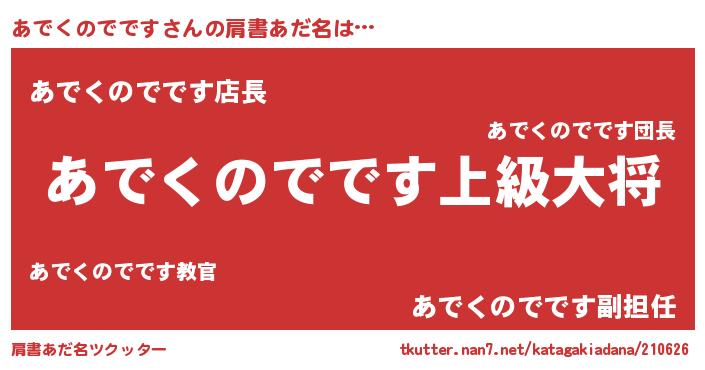 | 男性向けラノベタイトル風あだ名 | 『転生したらあでくのでですだった件』 |
