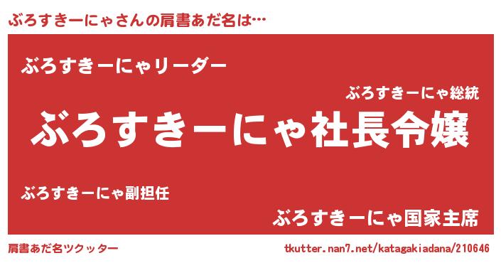 | 胡散臭い通販商品みたいなあだ名 | 『億万長者になれる霊験あらたかなお札…その名も「ぶろすきーにゃ」』 |