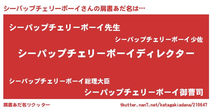 | ヒーロー風カッコイイあだ名 | 『ネオシーパップチェリーボーイ』 |