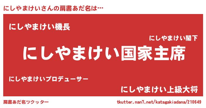 | 欧米人風あだ名 | 『にしやまけいクリステル』 |