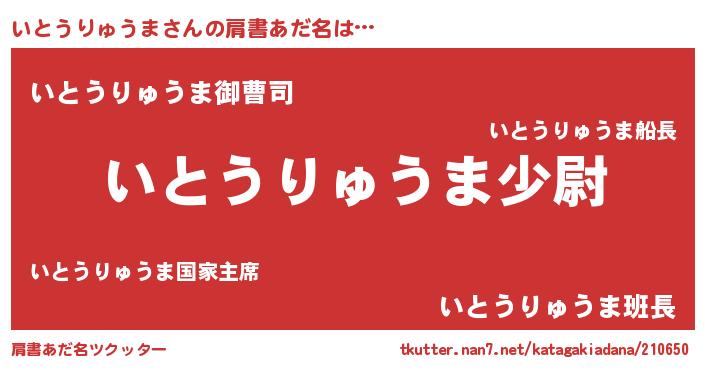 | 男性向けラノベタイトル風あだ名 | 『イトウリュウマスレイヤー』 |