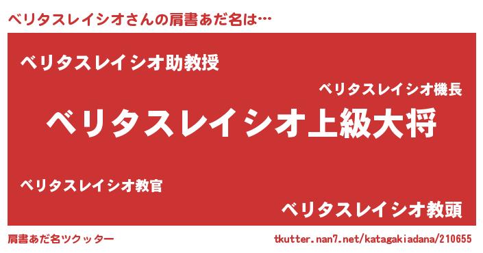 | 男性向けラノベタイトル風あだ名 | 『転生したらベリタスレイシオだった件』 |