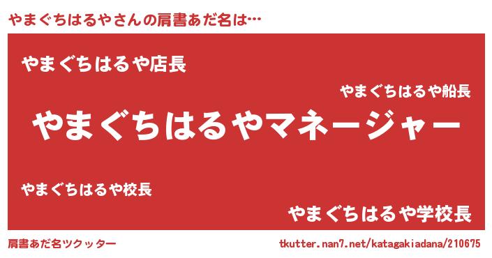 | 男性向けラノベタイトル風あだ名 | 『はたらくやまぐちはるやさま!』 |