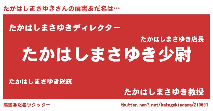 | 男性向けラノベタイトル風あだ名 | 『転生したらたかはしまさゆきだった件』 |
