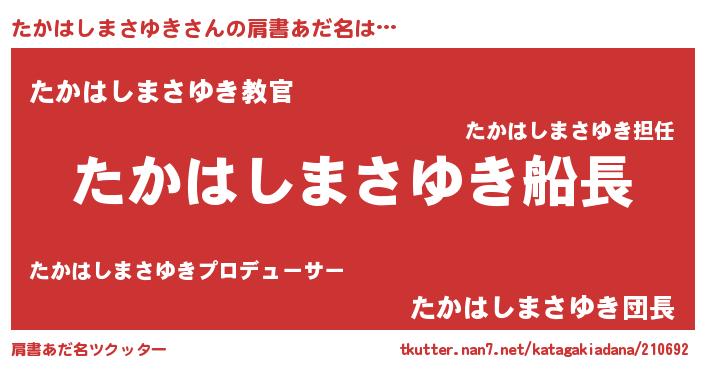 | 意味不明あだ名 | 『住所不定無職たかはしまさゆき(9歳)』 |