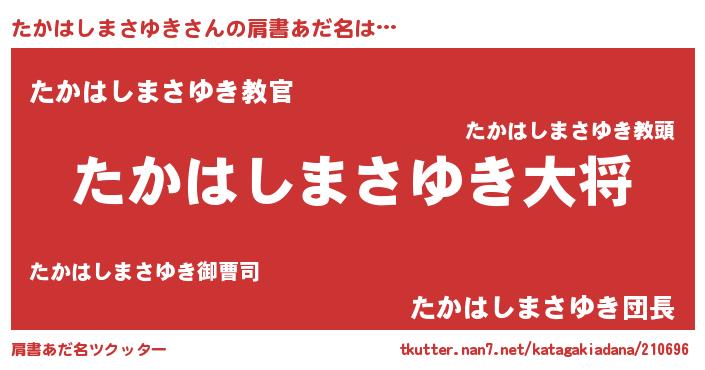 | 男性向けラノベタイトル風あだ名 | 『タカハシマサユキスレイヤー』 |