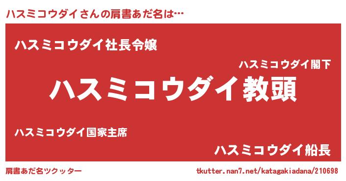 | 欧米人風あだ名 | 『ダルビッシュハスミコウダイ』 |