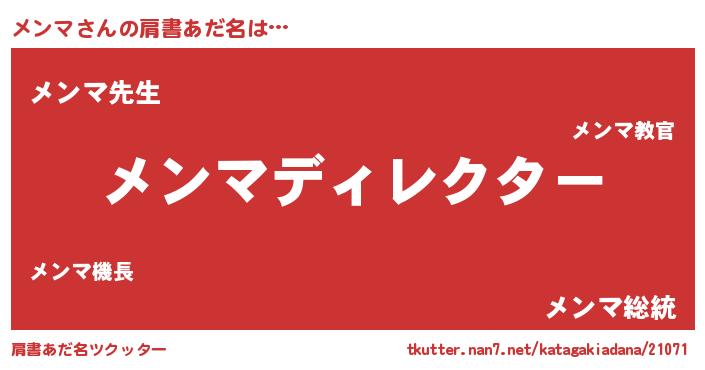| 欧米人風あだ名 | 『アンジェラ・メンマ』 |