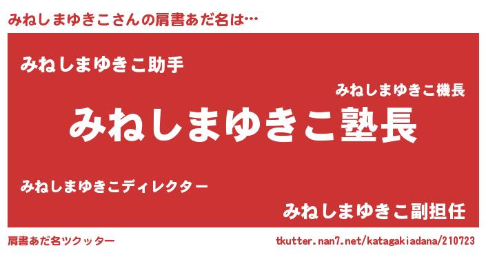 | 胡散臭い通販商品みたいなあだ名 | 『信頼と実績のネックレス…その名も「みねしまゆきこ」』 |
