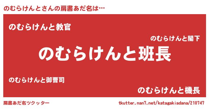 | 男性向けラノベタイトル風あだ名 | 『のむらけんとの嫁は女の子じゃないと思った?』 |
