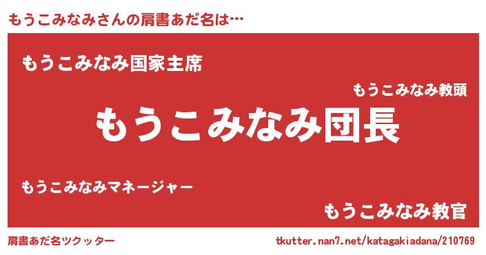 | 意味不明あだ名 | 『とにかく怪しいもうこみなみ』 |