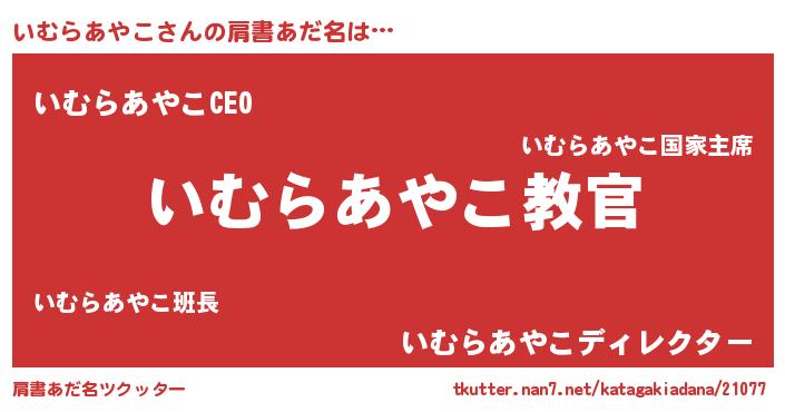 | 男性向けラノベタイトル風あだ名 | 『この素晴らしい世界にいむらあやこを!』 |