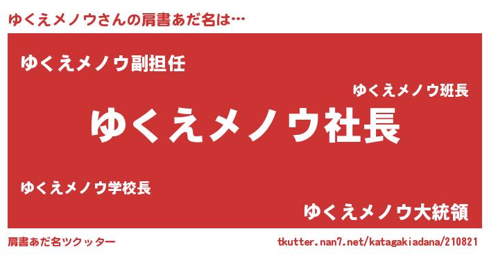 | ヘコむあだ名 | 『ゆくにー』『ゆくえメノウ(震え声)』 |