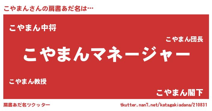| 男性向けラノベタイトル風あだ名 | 『こやまんに滅ぼされるだけの簡単なお仕事です』 |