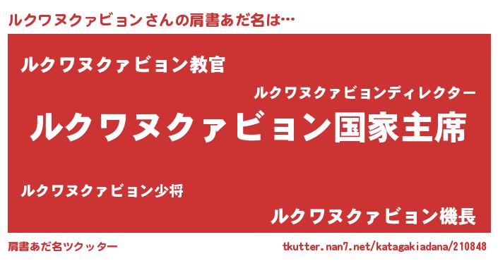 | 男性向けラノベタイトル風あだ名 | 『やはりルクワヌクァビョンの青春ラブコメはまちがっている 』 |
