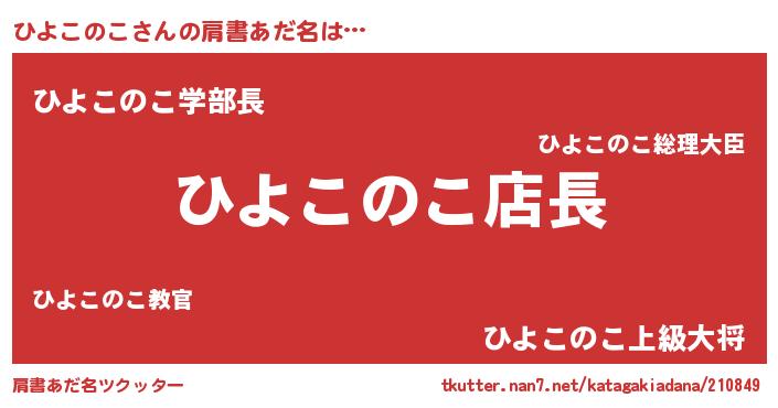 | 男性向けラノベタイトル風あだ名 | 『ヒヨコノコアートオンライン』 |