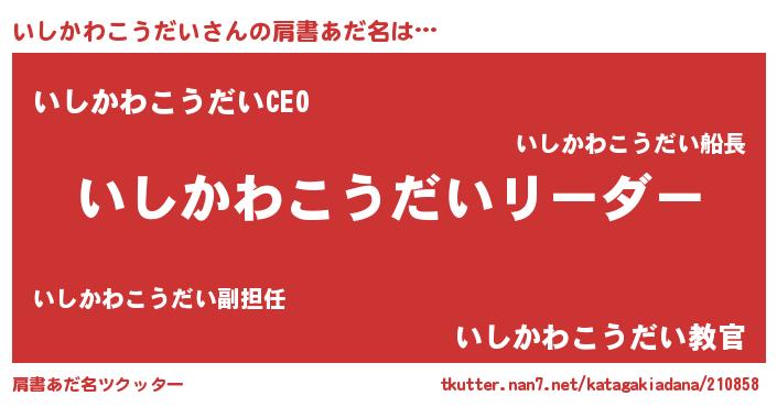 | 意味不明あだ名 | 『とにかく怪しいいしかわこうだい』 |