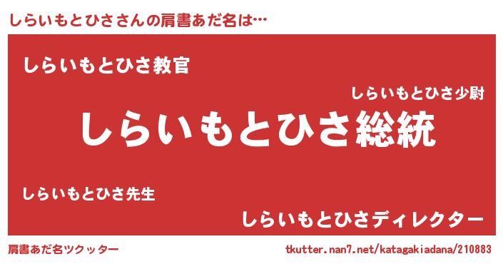 | 意味不明あだ名 | 『自称しらいもとひさ』 |
