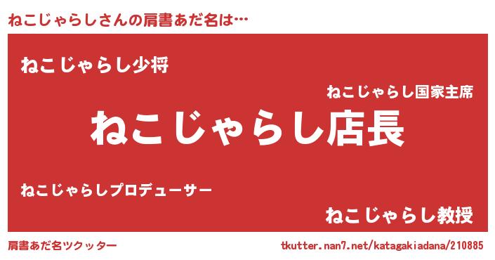 | 女子向けラノベタイトル風あだ名 | 『ねこじゃらし姫と円卓の騎士』 |