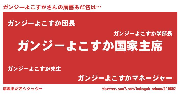 | ポケモン風あだ名 | 『ガンジダネ』『ヒガンジーヨコスカ』 |