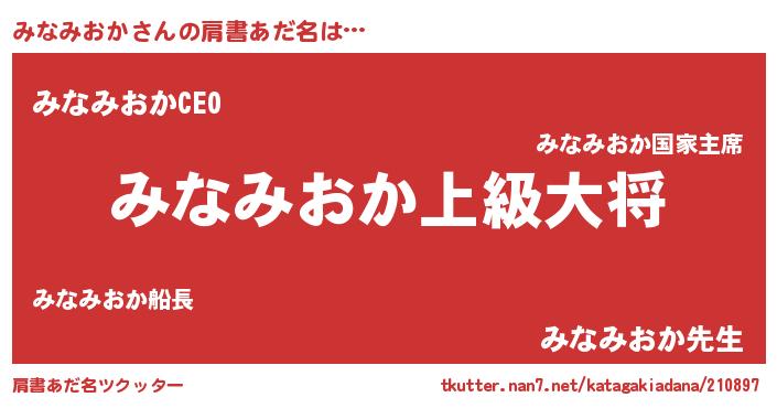 | 胡散臭い通販商品みたいなあだ名 | 『億万長者になれる霊験あらたかなお札…その名も「みなみおか」』 |