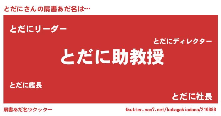 | ヘコむあだ名 | 『とだ太郎』『とだっふぃ~』 |