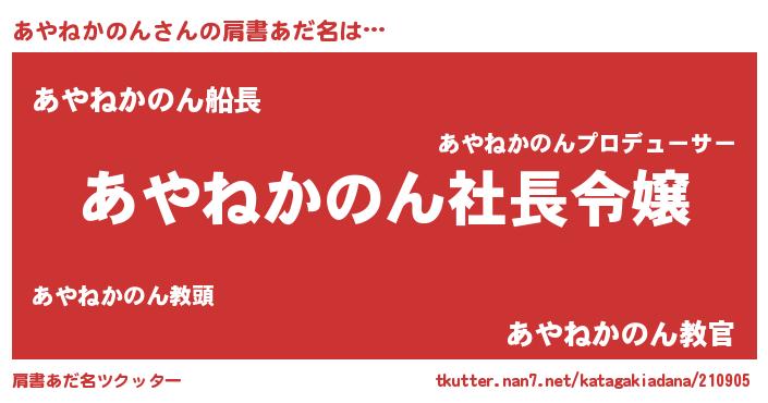 | ヒーロー風カッコイイあだ名 | 『スーパーアヤネカノン』『仮面アヤダー』 |