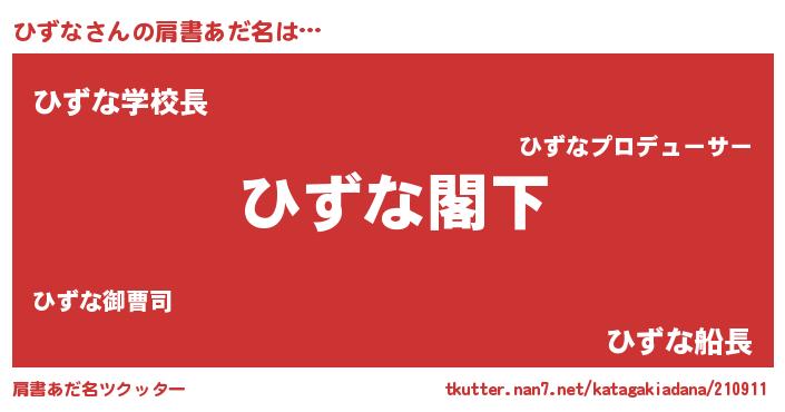 | 女子向けラノベタイトル風あだ名 | 『ひずななんてお断りですっ。』 |