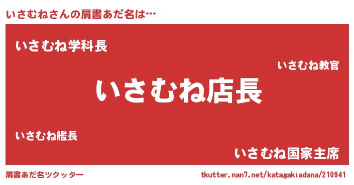| ヒーロー風カッコイイあだ名 | 『スーパーイサムネ』『仮面イサダー』 |