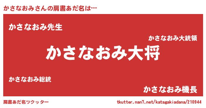 | 男性向けラノベタイトル風あだ名 | 『カサナオミスレイヤー』 |