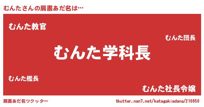 | 女子向けラノベタイトル風あだ名 | 『死神むんたの再婚』 |