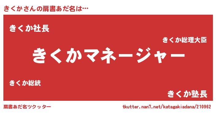 | 欧米人風あだ名 | 『アンジェラ・きくか』『マイケルきくか』 |