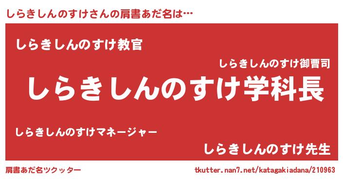 | 男性向けラノベタイトル風あだ名 | 『ノーゲーム・ノーシラキシンノスケ』 |