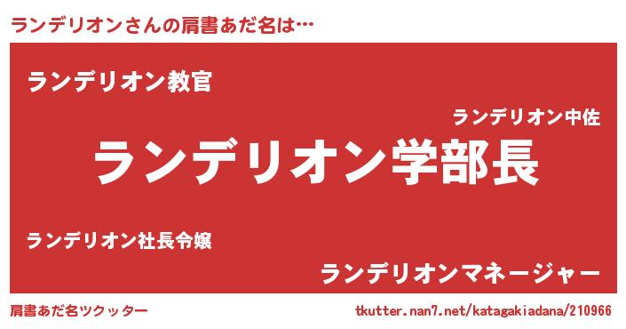 | 男性向けラノベタイトル風あだ名 | 『おまえをオタクにしてやるから、俺をランデリオンにしてくれ! 』 |