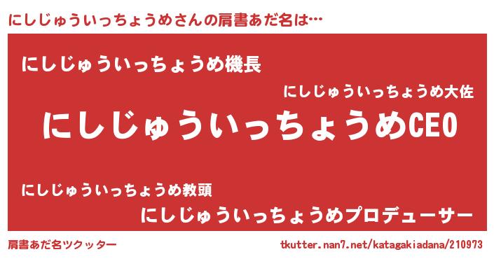 | 男性向けラノベタイトル風あだ名 | 『ニシジュウイッチョウメアートオンライン』 |