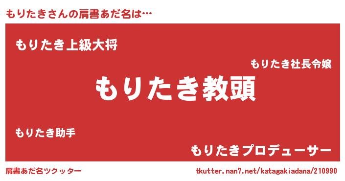 | 男性向けラノベタイトル風あだ名 | 『誰もが恐れるあのもりたきが、ぼくの専属メイドになるようです。』 |