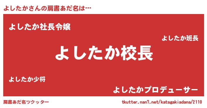 | 女子向けラノベタイトル風あだ名 | 『異世界で失敗しない100のよしたか』 |