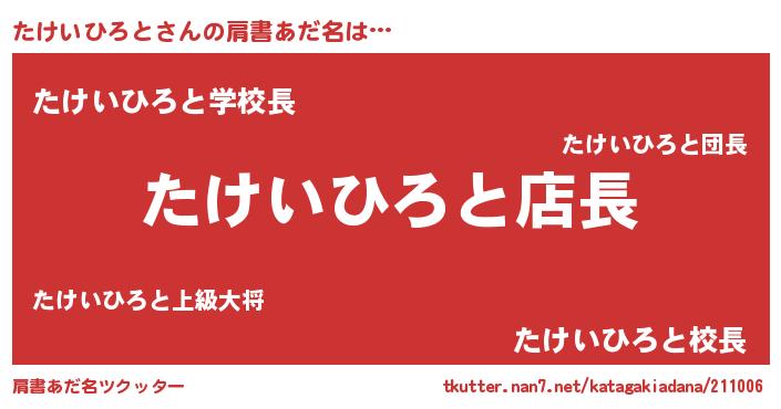| ヘコむあだ名 | 『たけにゅー』『たけいひろと(苦笑)』 |
