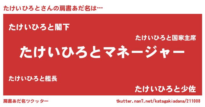 | 男性向けラノベタイトル風あだ名 | 『はたらくたけいひろとさま!』 |
