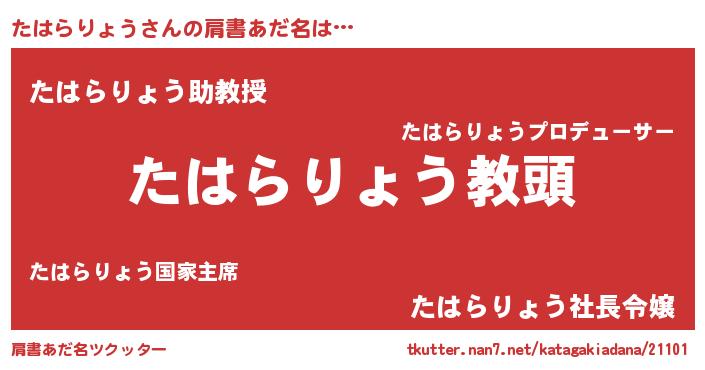 | 女子向けラノベタイトル風あだ名 | 『たはらりょうの契約王妃』 |