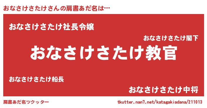 | 男性向けラノベタイトル風あだ名 | 『この素晴らしい世界におなさけさたけを!』 |