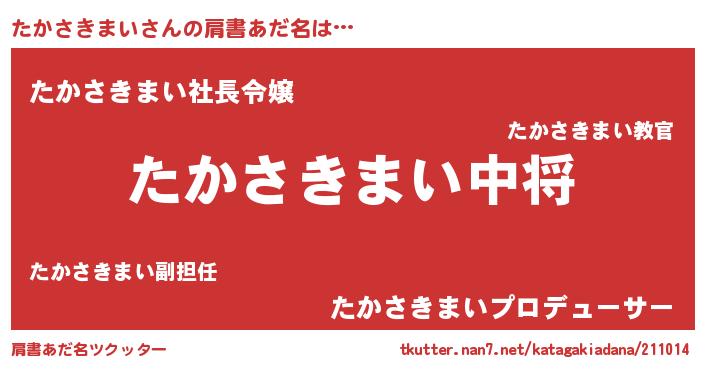 | 男性向けラノベタイトル風あだ名 | 『転生したらたかさきまいだった件』 |