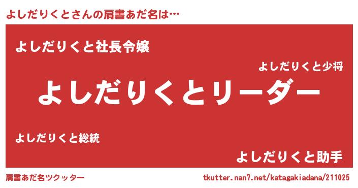 | ポケモン風あだ名 | 『ヒヨシダリクト』『ヨシチュウ』 |