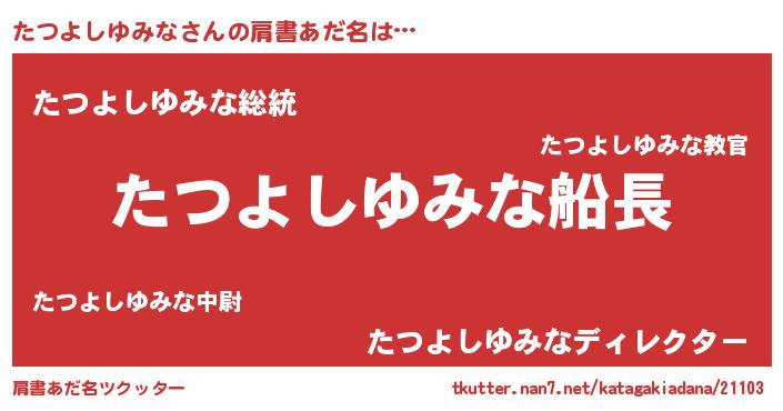 | ヘコむあだ名 | 『たつよしゆみな(小並感)』『たつもー』 |
