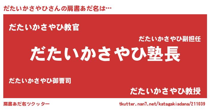 | 意味不明あだ名 | 『とにかく怪しいだたいかさやひ』 |