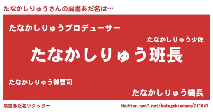| 男性向けラノベタイトル風あだ名 | 『ダンジョンにたなかしりゅうを求めるのは間違っているだろうか』 |