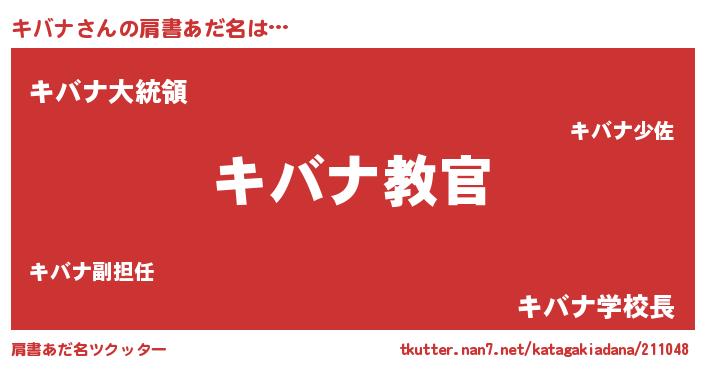 | ヒーロー風カッコイイあだ名 | 『仮面キバダー』『ウルトラキバナマン』 |
