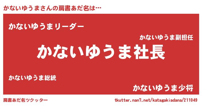 | ヒーロー風カッコイイあだ名 | 『スーパーカナイユウマ』『天弓騎士カナ』 |