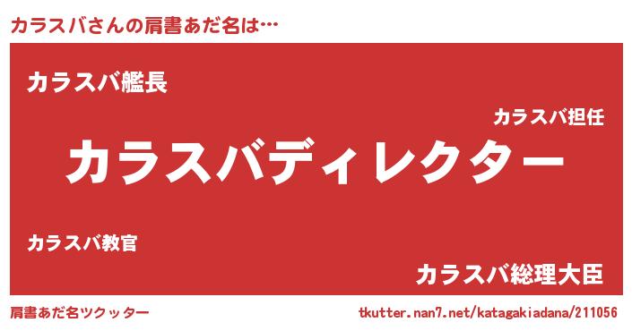 | 男性向けラノベタイトル風あだ名 | 『カラスバに滅ぼされるだけの簡単なお仕事です』 |