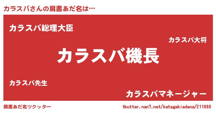 | ヒーロー風カッコイイあだ名 | 『ウルトラカラスバマン』『ネオカラスバ』 |